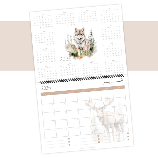 تقويم ميلادي لسنة 2026 بثيم حيوانات الغابة {17 صفحة}