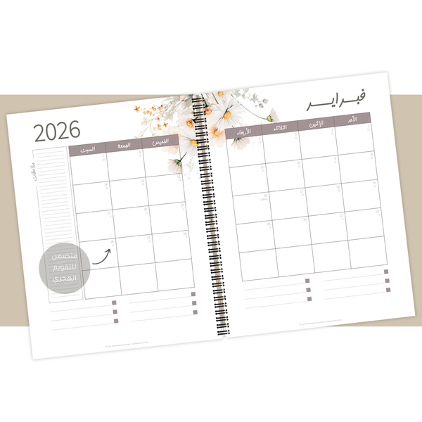 تقويم ميلادي لسنة 2026 مع التقويم الهجري بالأزهار البرية {30 صحفة}